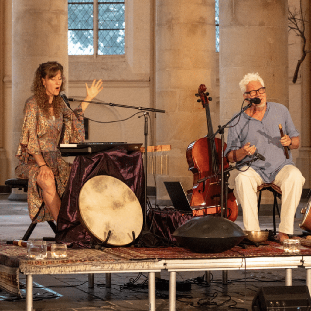 In een wereld die steeds sterker gepolariseerd is, biedt deze bijzondere voorstelling een oase van rust, verbinding en mededogen. Henk van Glabbeek verweeft authentieke klanken van traditionele wereldinstrumenten met rijk gelaagde elektronische soundscapes. De intuïtieve samenzang met Yvonne Vruggink zorgt voor harmonieën die zowel tijdloos als vernieuwend zijn.