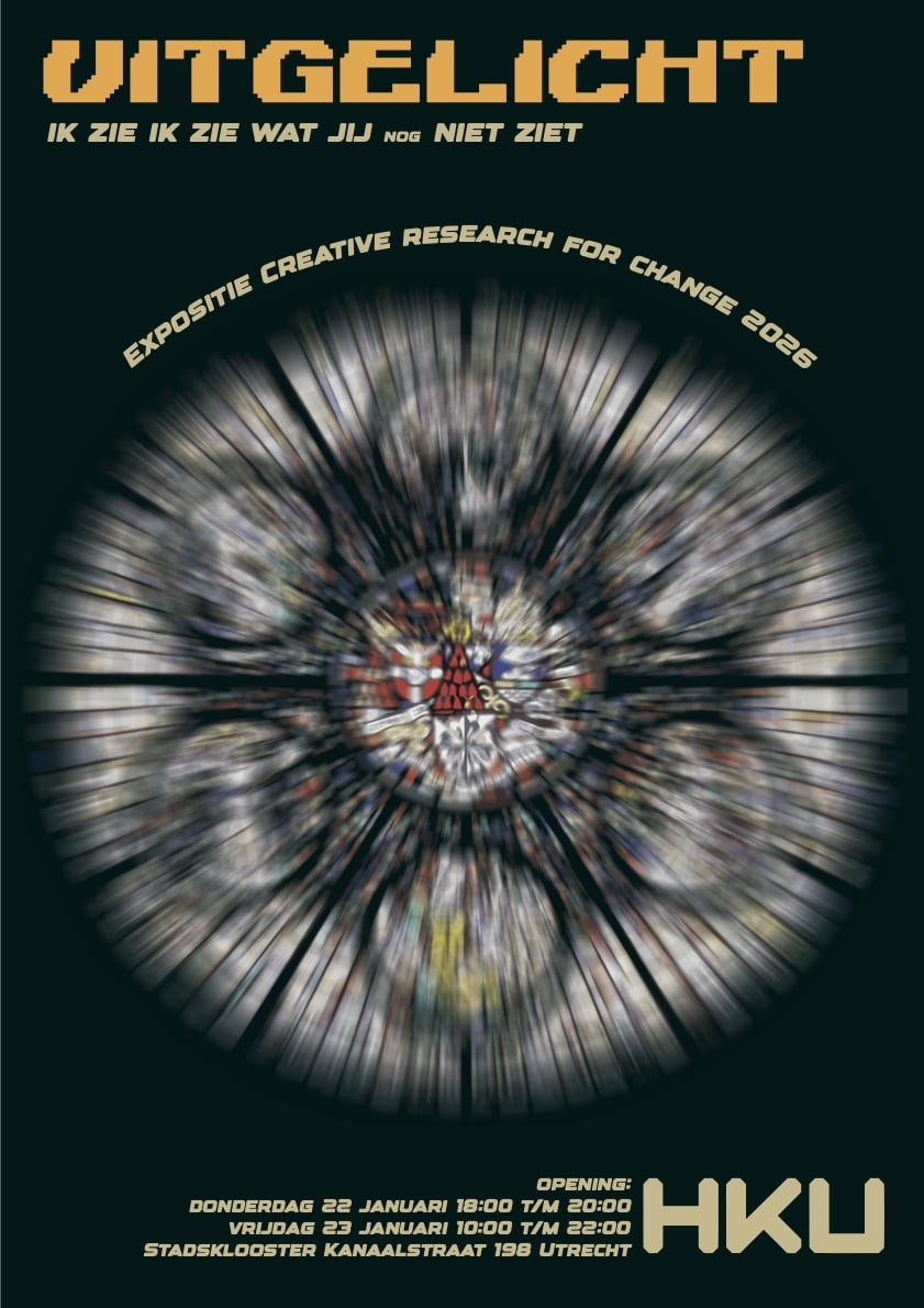 Op 22 en 23 januari 2026 exposeren studenten van de HKU hun werk in Stadsklooster Utrecht. De studenten volgen de opleiding ‘Design for Change and Innovation.’ Ze onderzoeken maatschappelijke thema’s met artistieke en ontwerpmatige methodes. Die vertalen ze naar eigen inzicht naar de expo ‘Uitgelicht’. Bij ons dus! Je bent welkom.